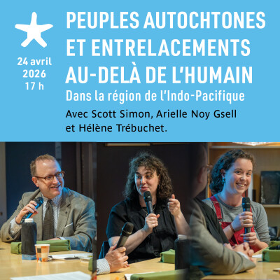 Que peuvent nous apprendre le drongo royal, l'alcippe à joues grises et le canard colvert sur les relations que les humains entretiennent avec le monde ? En suivant la trace des oiseaux, l'anthropologue Scott Simon explore dans ses travaux récents à travers la région de l'Indo-Pacifique ce qu'il nomme des entrelacements (entanglements) interespèces. Cet événement, conçu comme un entretien avec le chercheur, sera l'occasion d'explorer ce que ces relations humains-oiseaux peuvent dire de l'histoire d'un territoire mais aussi des rapports de force entre des autorités et les populations qu’elles gouvernent. Cette rencontre permettra enfin de faire découvrir au public les recherches que Scott Simon mène depuis plus de vingt ans sur l'autodétermination des peuples autochtones à une échelle transnationale, entre Taiwan et le Canada.
